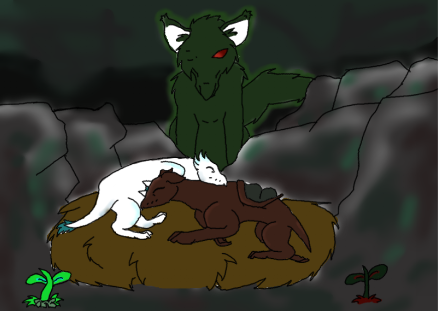 yay I haven't drawn them in along time I missed drawing them here they are when there just born from the father tree yes befor you ask don't you mean mother well that not how tree slenders work ^^'''' but I will go in to that later but here are Slenderwalker and the forbettenman's tree beasts with scaren's tree beast watching them