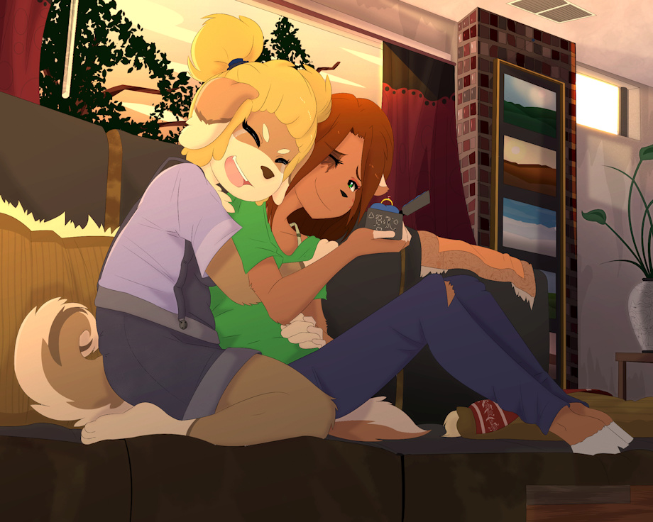 Zoey fiddled nervously with the little blue box in her hands. It had taken her months to save up the money for this ring, and now that she was alone with her long time girlfriend for the weekend, she was getting hit with fits of doubt. Is it too soon? What if she says no? These questions were cut off by the sudden feeling of Cass sitting down with the deer girl on the couch and snuggling up to her happily. Now or never, she thought. Giving her love a peck on the cheek, she reached into her back pants pocket and pulling the ring case. "Will you marry me..?"