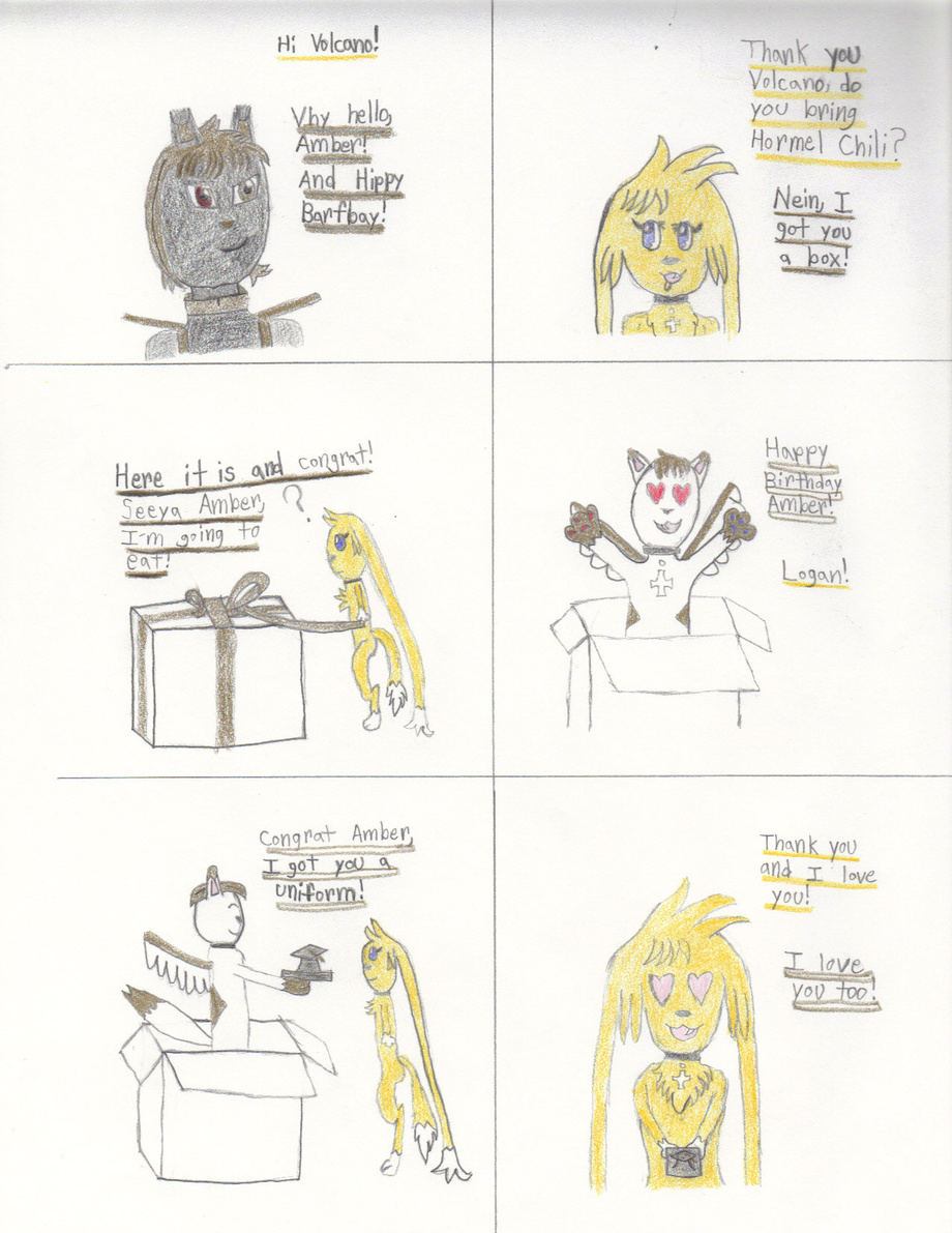 Hippy Barfbay Amber! XD It's my silly vay to say Happy Birthday. It's my first time I post comic in my gallery. I like to color the uniform black.