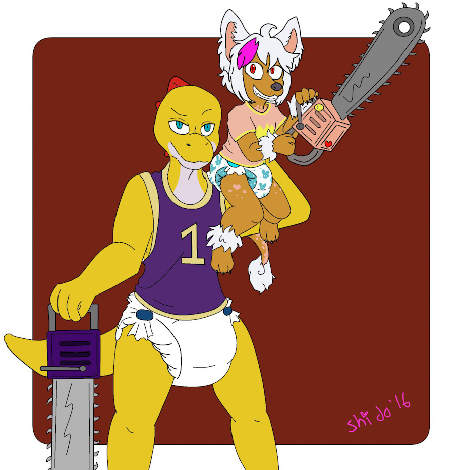 Showtime and Shido with their favorite toys. Seems the puppy is more than ready to slice and dice.