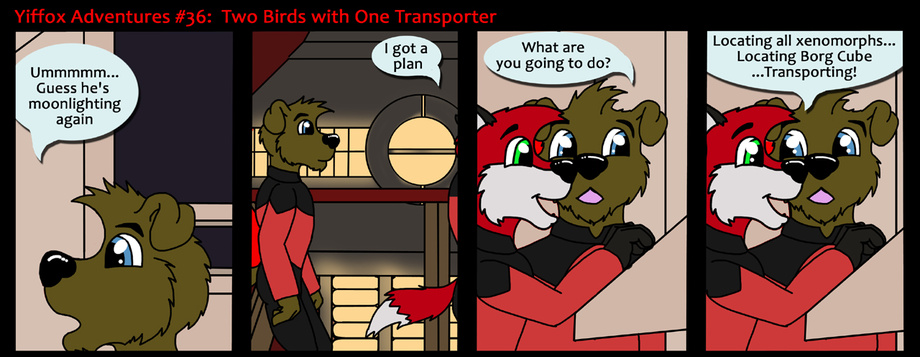 Is this the end of Yiffox?? Will Yiffdawg ever get laid? Will Yiffox go blind from that laser pointer thingey? Tune in next time, same borg channel, same borg stardate!