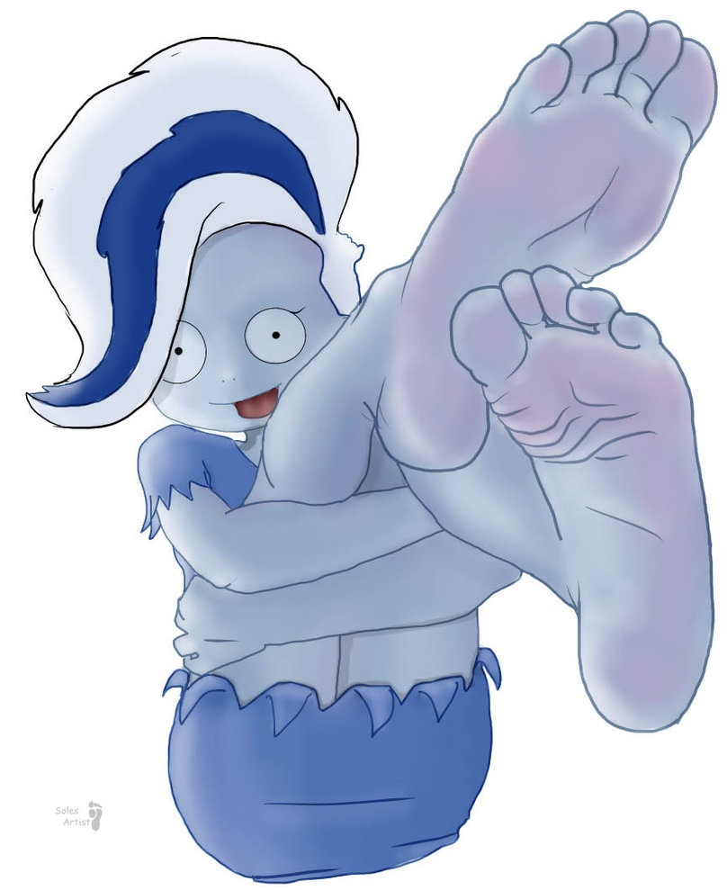 Phantasma, the cute ghost/phantom holding up her spectral soles.
