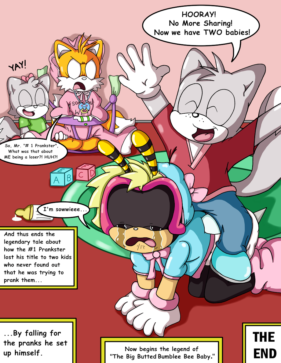 Charmy should have just let Tails free and ran off with him so that he could get a nice Mission Well-Done sticker from Vector followed by the gift of a well-earned Ice-Cream cone. But no. He let his pride get the better of him and as a result his awesome pranking skills were put to use before anything else and backfired on him. Now there's two missing instead of one. Hope someone finds them fast.