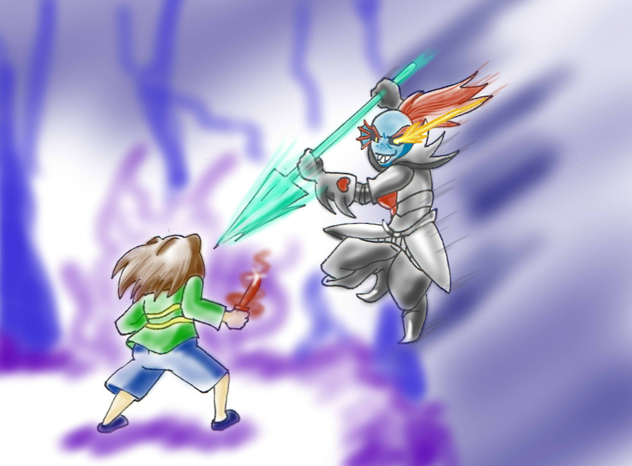 El chiste es que más o menos se entienda lo que dice Papyrus, use un programa aparte para cambiar la voz, así que ambas son mías jejeje, para que se distinguiera un poco mejor.