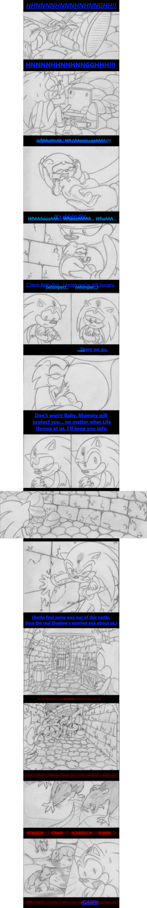 I love seeing Sonic like this... I've always imagined him being a really protective mother/father of his baby <3 Poor thing though, having to go through so much pain D: