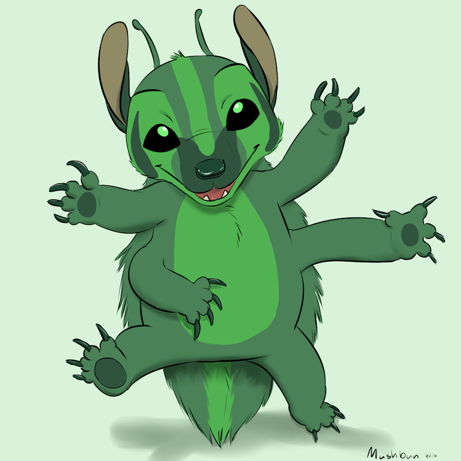 Stream commission for [iconname]iburnaga[/iconname]. Green Stitch mixed with a badger. =3