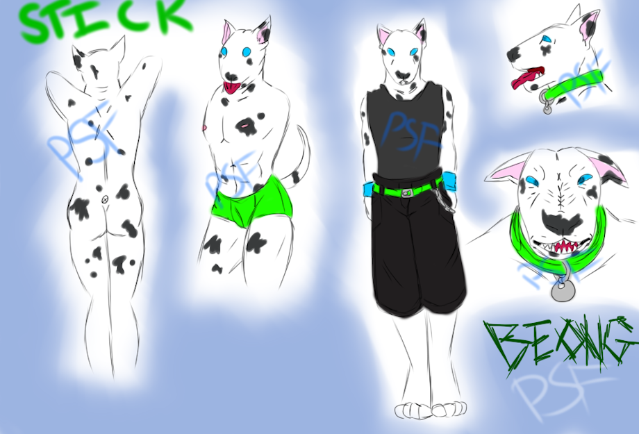 Primarily white fur, black spots, blue eyes, strong build