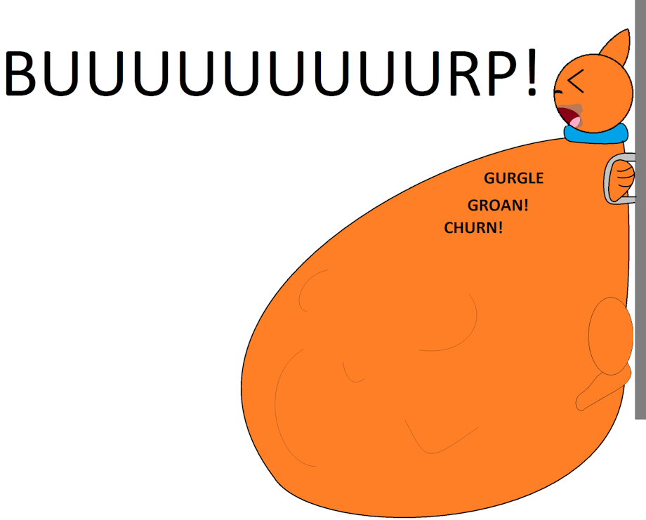 Leroy was enjoying the sweet flavor too much to notice his belly continuing to grow, but sadly the room was locked until the prototype was contained again, either in its box, or his stomach. "This shouldn't be happening, it should have stopped by now. It was genetically programmed to stop after feeding 10 gallons." Leroy hears this and finally saw his belly, holding 15 gallons and growing, but his body can't stop swallowing and he was helpless to stop this creature as it feeds him, it takes several hours and his belly bulged bigger and bigger as the slime creature keeps going, having half of it in him already, his belly being very loud as it gurgled and groaned as it slowly digests the creature. His belly bulging wobbling and sloshing about as the creature moves about inside, his mouth getting covered in chocolate as he just relaxed and watched his belly slowly reach the cold floor which made him jump from the feeling.