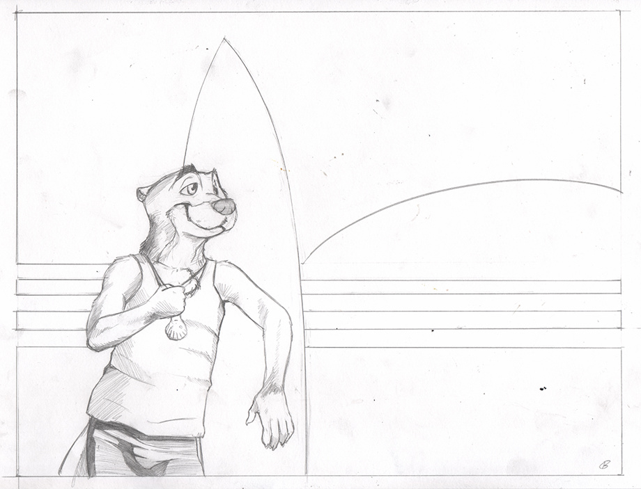 Another #RudderButtChallenge sketch becuase I just liked the idea of an otter posing with a surfboard