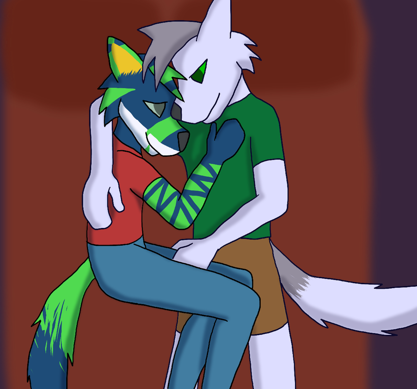 hey guys so me and Lownleinhigh did a little art trade togther and this is his part so like you can see in this amazing draw wolfie is showing his amazing face with a creepy star i really love it hehe so any way thank you so much Lownleinhigh i cant so how awesome this draw is :D