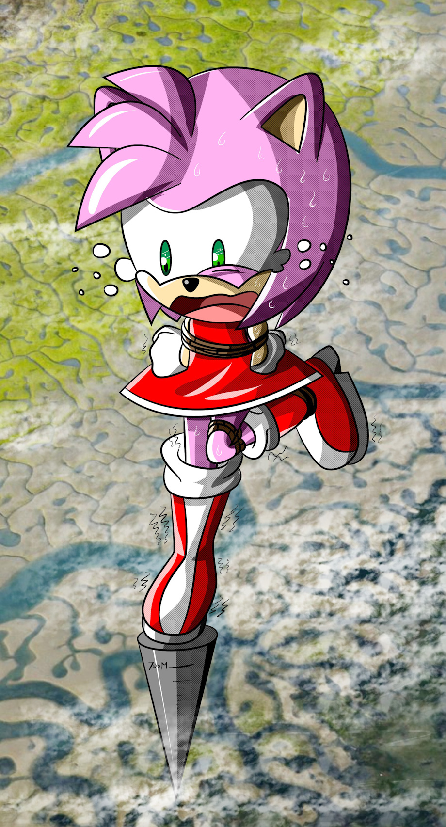 Amy, Cosmo, and Blaze was tied to the pole, vibrated for no reason.