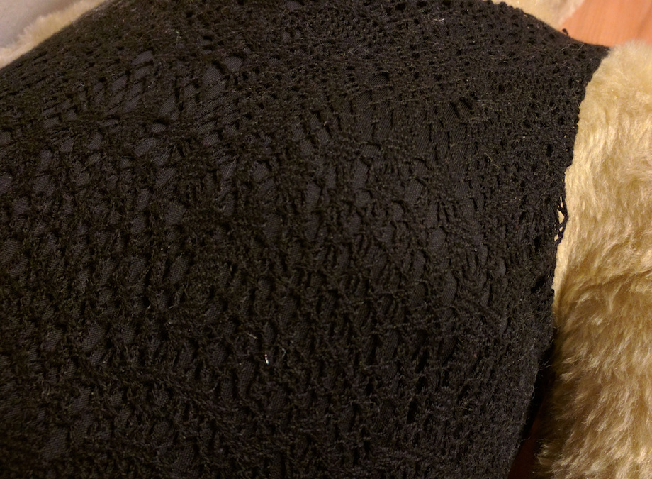 Included with the plush is a black lace dress, and white panties with matching white bra.