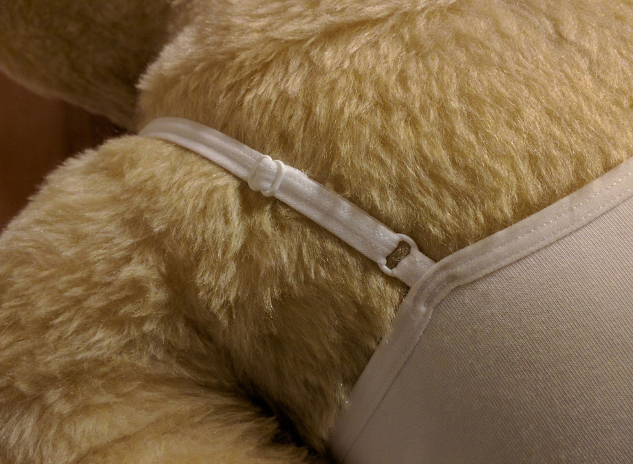 Included with the plush is a black lace dress, and white panties with matching white bra.