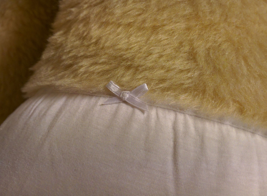 Included with the plush is a black lace dress, and white panties with matching white bra.