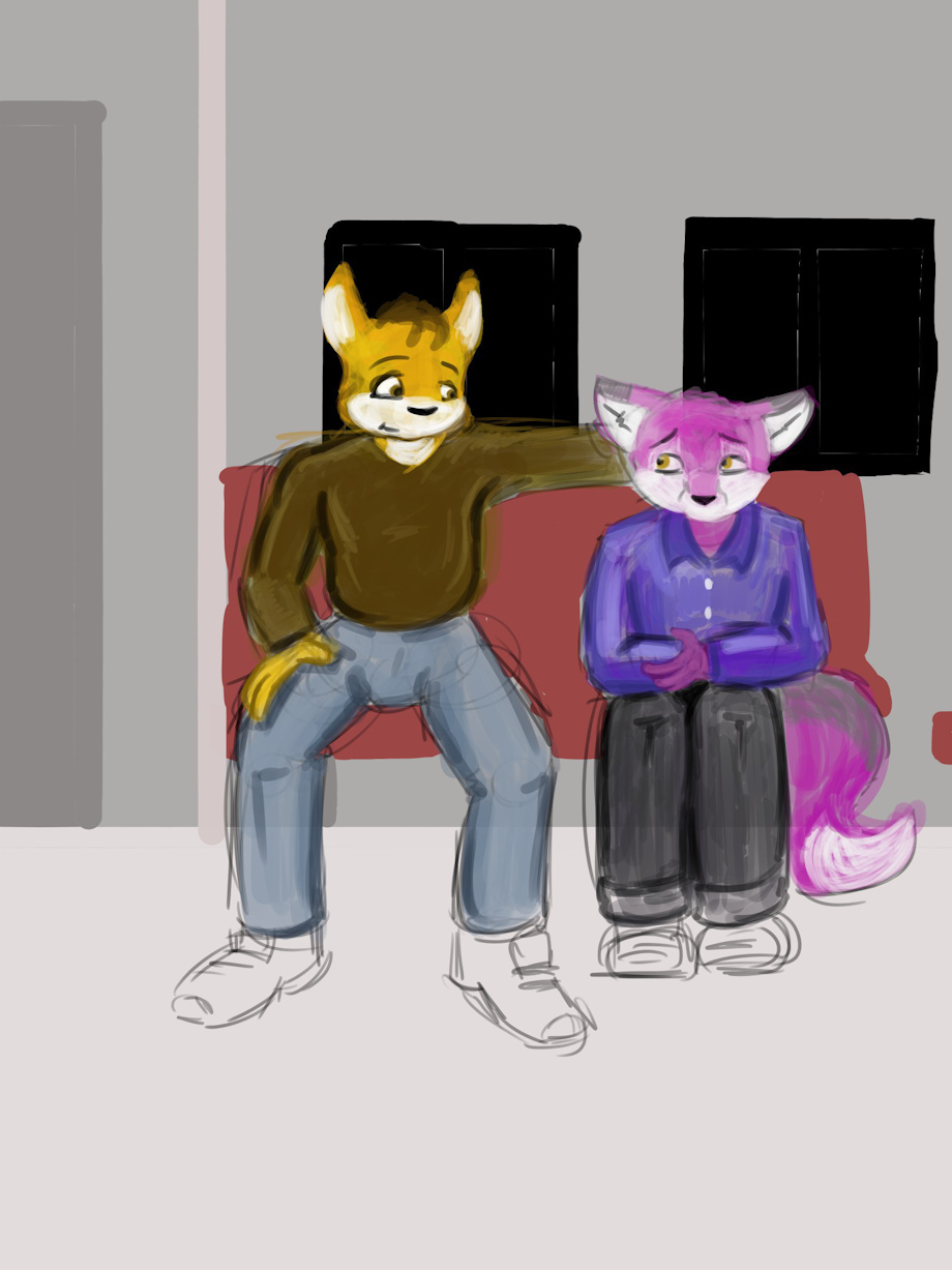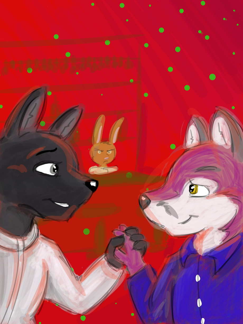 Nighttime on the subway, the car rattling and swaying on the tracks as Sabian and Feldon travelled out of Cantertown and into the city. The young fox felt strange and nervous in the ensuing silence and tried to start up a conversation: “So have you been in Cantertown long? I'm surprised that our paths have never crossed.”