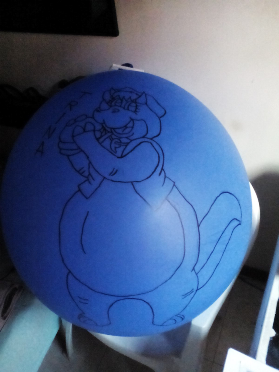 I drew my Trina the Triceratops, this time on a China 27" balloon, neat balloons, nice colors, but sadly, the latex is too thin they are so weaks and pop very easily, even underinflated