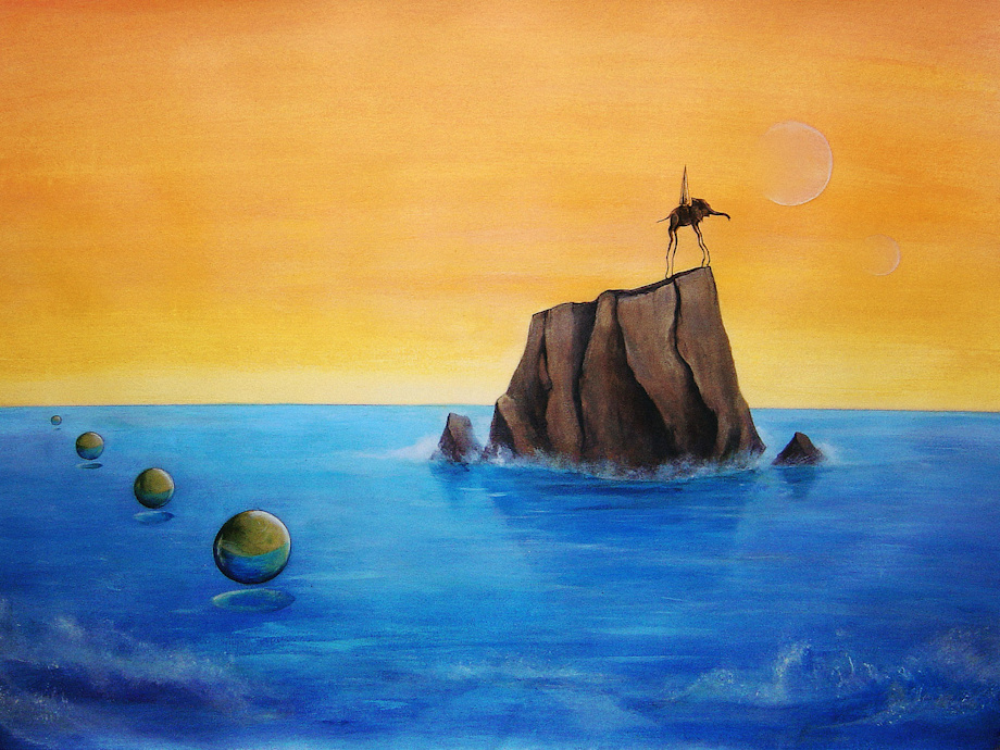it's a project i wanted to finish this year, something surrealistic, pretty much inspired by Salvador Dali's works. it's the same place as seen in "Dream Caused by the Flight of a Bee Around a Pomegranate a Second Before Awakening"