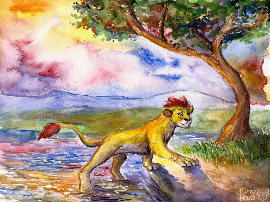I think that Kion's song in the first episode of The Lion Guard was terrible. He shouldn't sing anymore...but I liked the background and effects in this scene :) So i decided to paint a little fan art...