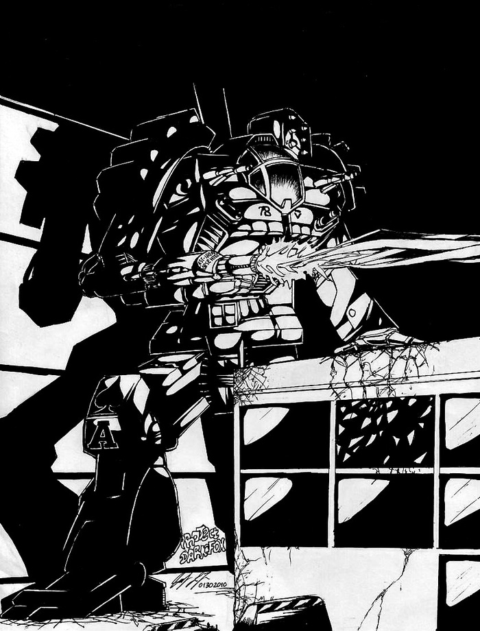The hardest part was actually the backdrop around the 'Mech, trying to figure out how to not lose the focus on the killing machine taking partial cover behind that building. I like it, but I hate it, too.
