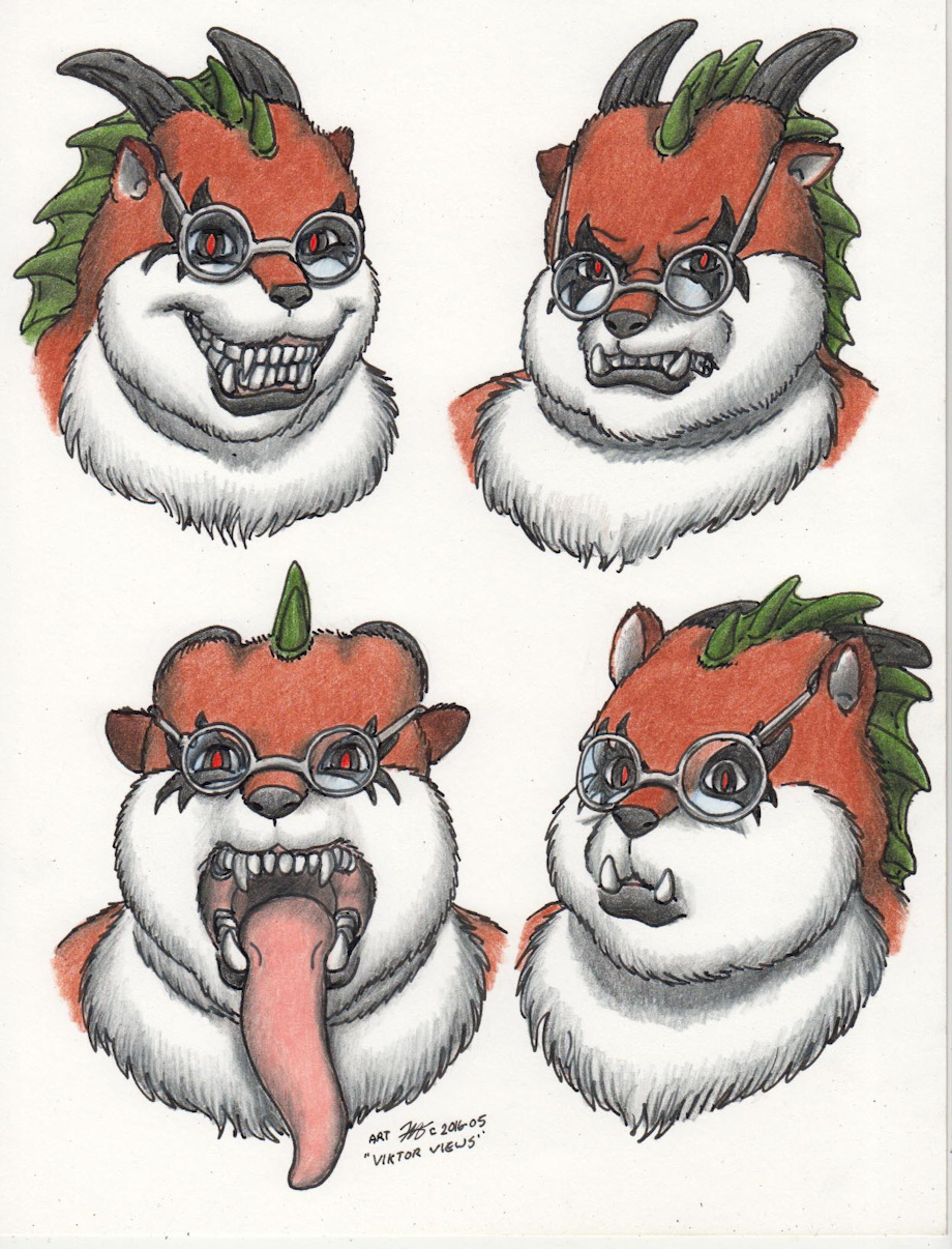 great expresions and I always love how you make the glasses fit over the ears instead of magicly hanging onto the muzzle homehow. love that tounge~