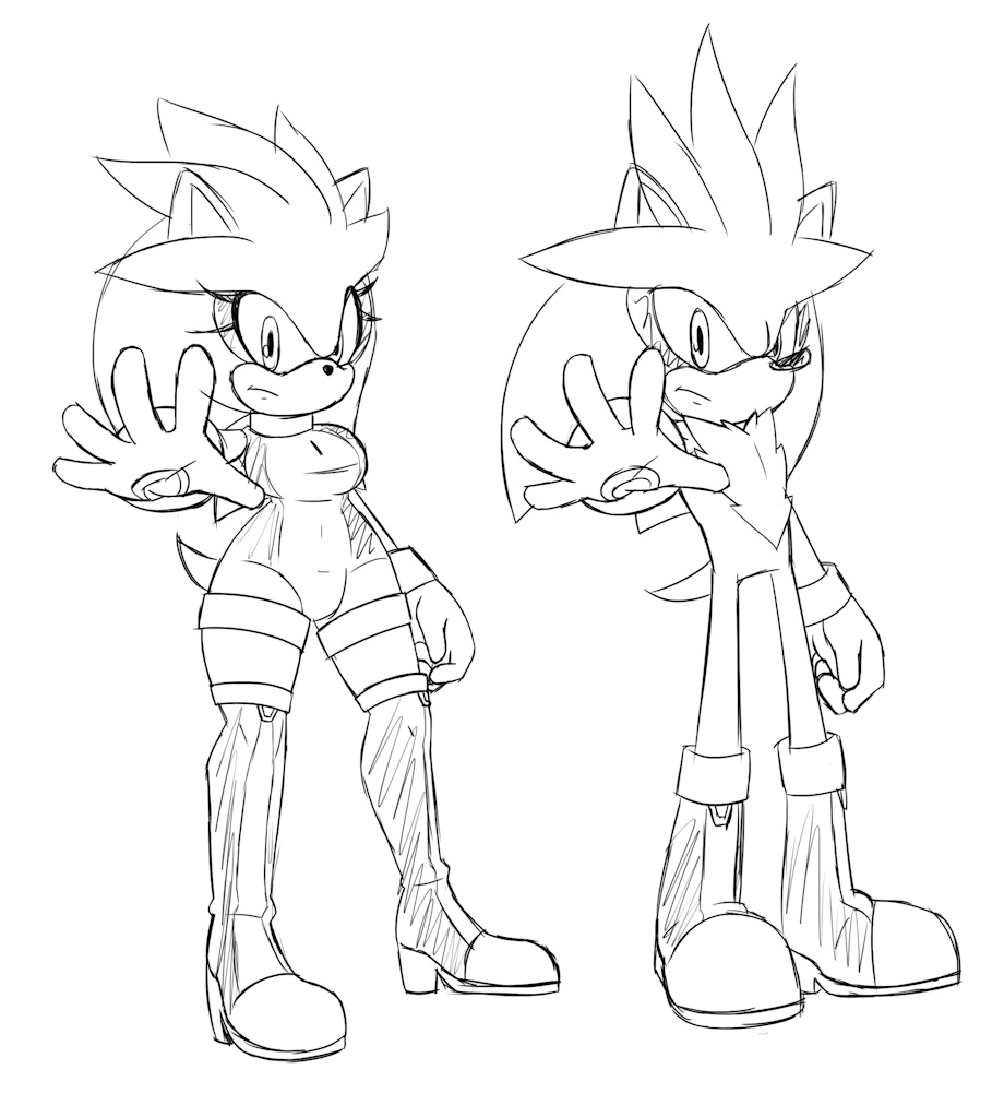 For these, I drew them beside their normal versions as a sort of test. As I said in my picture of Sonic and Sally, I noticed that the proportions of my Sonic males and females are completely different. So to help remedy that, I decided to change something. So I made the torsos and the legs of the girls here shorter, and put them next to their male counterparts as a comparison. What do you guys think?