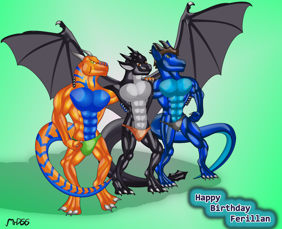 Ohh man so many birthdays for so many amazing people. Had a lot of fun at the Canadian Furry convention Fur Eh! Got to meet so many people; and spent a lot of time hanging out with these guys. So I decided to make this fun piece of art. Happy Birthday Ferillan! :D