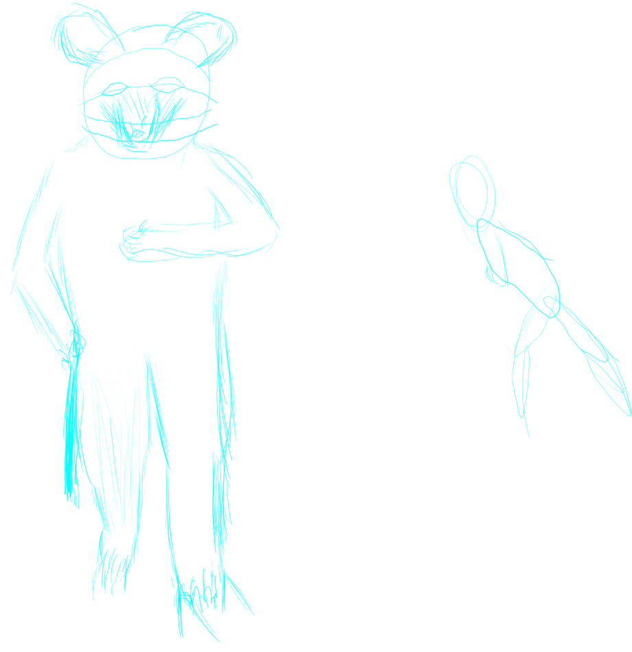 Not exactly perfect..in part due to the fact this is just a touch of a rough pose..I left in the lil sketch giving me an idea of where things would be from front (as i see things a touch easier from the side than front). Just because I felt like it. The pose is now a touch incorrect I can say lookin back on it. But the general form is there..even if this looks more like someone bowing down than anything.