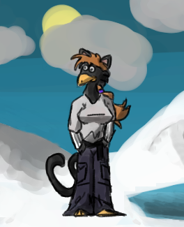 So here's a fun fact. There was a time when Ibun wasn't my only character. This is Bethanie, a hybrid penguin/cat. Why penguin? I dunno, I always described Ibun's fur pattern as being penguin-like, so I kinda ran with that idea. It's been ages; I know a few people who will probably remember her, at least.