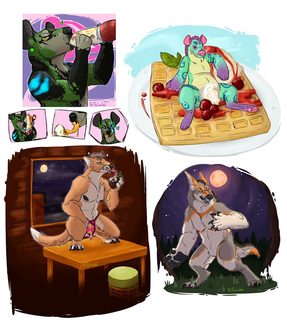 SFW half of the third (and last!) page of Food Porn + Full Moon Special commissions!
