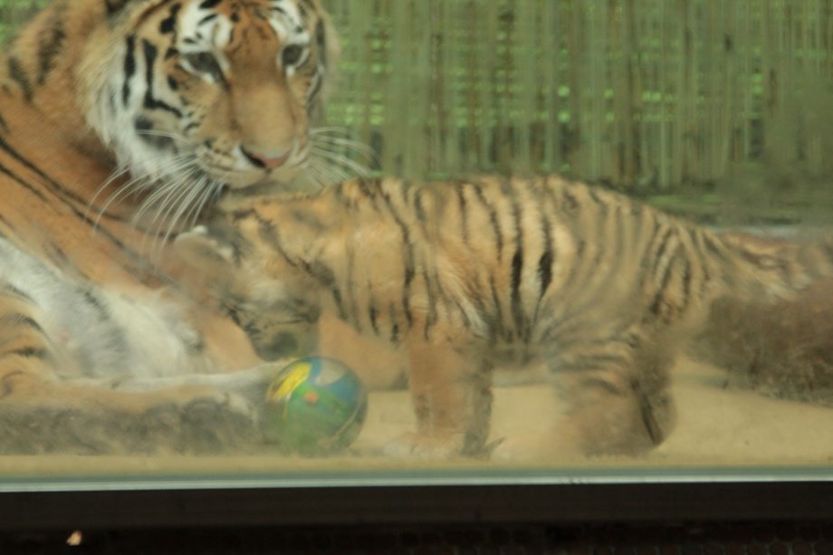 A big disadvantage of the internal enclosure of Straubing is, that the glass got some really big scritch marks and is quite dirty, again not the best for a photographer, when the Auto Focus catches up on all the fuzzy things on the window, instead of the tiger 4 inches behind. But in the next months the cubs are old enough to also learn the outer enclosure, when the weather is nice and I have some free time, I'll visit them again, and I promise then we'll get a lot more nice pictures.