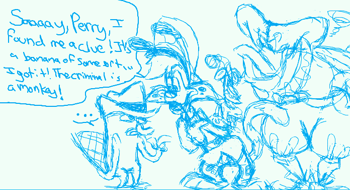 Bonkers always was one to get things mixed up but somehow he ended up at the right place anyway : ) Perry looks a little odd but Bonkers and Quackerjack look very good despite the sketchiness of the picture. Quackerjack doesn't look too happy about Bonkers fondling his "Mr. Banana Brain"