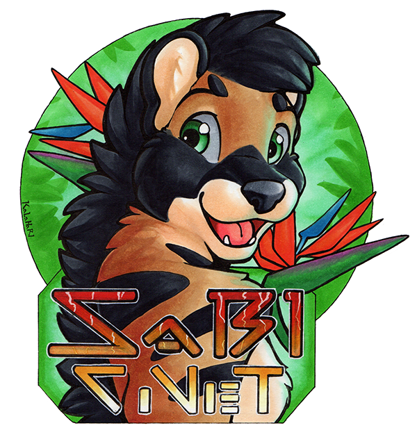 Finally, a fursuit badge! I plan to commission another in the future, but with FWA starting tomorrow I opted for just doing one myself. It's big (like a fusuit badge should be, I guess) at about 7x8" and once I get it laminated it'll just be a matter of attaching a cord or lanyard or . . . something.