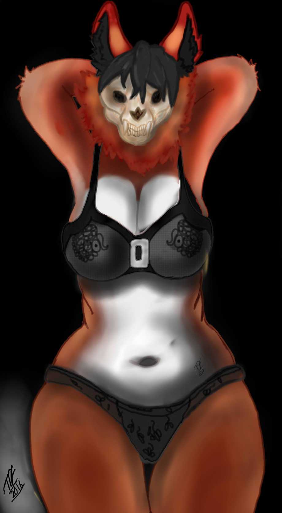 here is some art for fun for a friend for helping spread my art around and that i need commissions done. So the owner od this character is Vayisathedemonwolf , name of the species is a skully first time making one i love it and name of this sexy beast is vayisa hope u like.