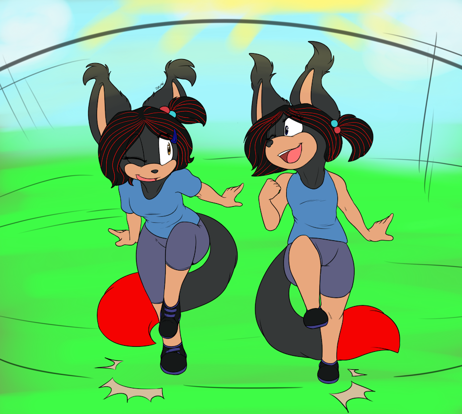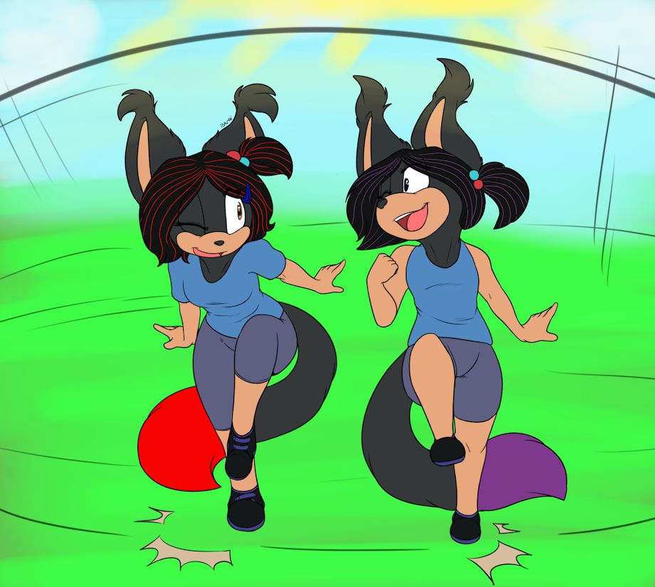 A commission i got from bubblekitten17 of Jenna playing and having fun with her twin Jessica. I wanted a pic showing these two they loved having fun and eating sweets, and trolling there parents and friends. They used to paint over there tails and hair to make it look exactly like the other. No one would know the difference expect for the eyes.Yea but is is more of a forgotten past for Jenna since the incident.