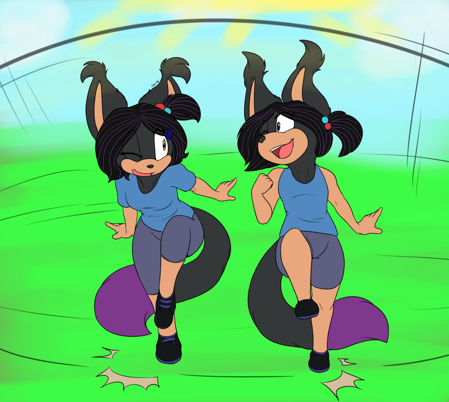 A commission i got from bubblekitten17 of Jenna playing and having fun with her twin Jessica. I wanted a pic showing these two they loved having fun and eating sweets, and trolling there parents and friends. They used to paint over there tails and hair to make it look exactly like the other. No one would know the difference expect for the eyes.Yea but is is more of a forgotten past for Jenna since the incident.