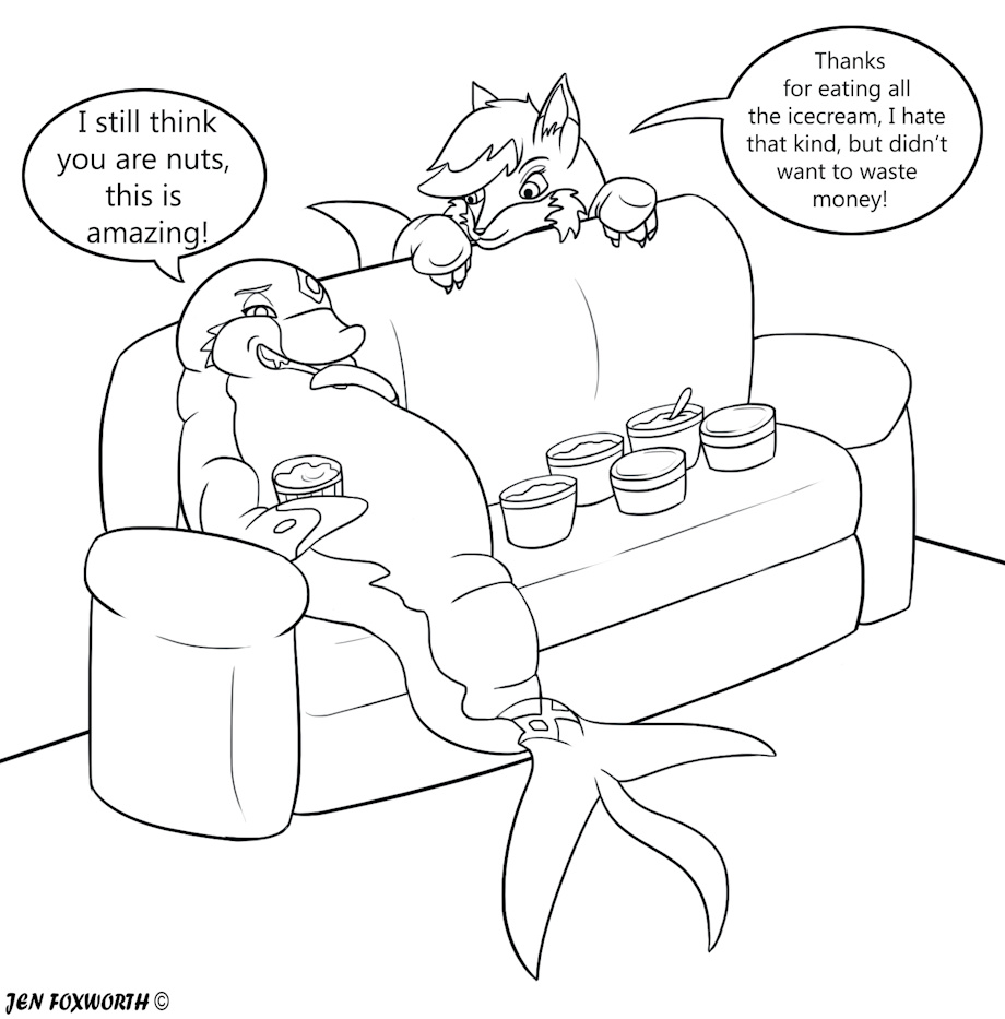 Fellarts loves the icecream I hate, so when I buy it and find out it tastes less then par, he comes over and will take care of the problem for me.