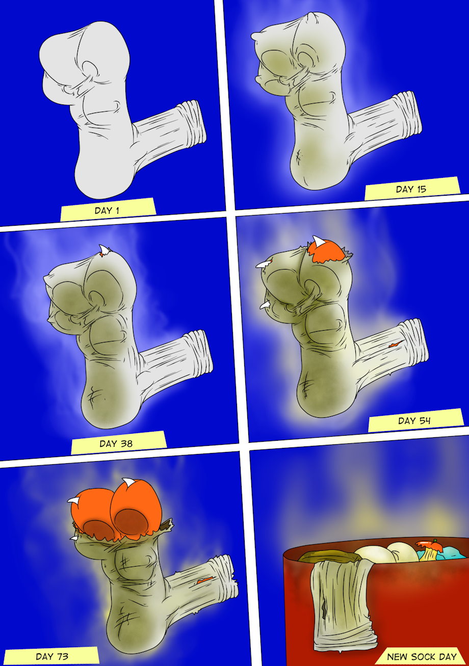 Everything looks accurate for me - until the last frame. Instead of throwing those wonderful old dirty smelly socks away, I wad them up and stuff them inside a favorite plushie, so the socks get a second life, providing their fun scent whenever I cuddle the plush. :)