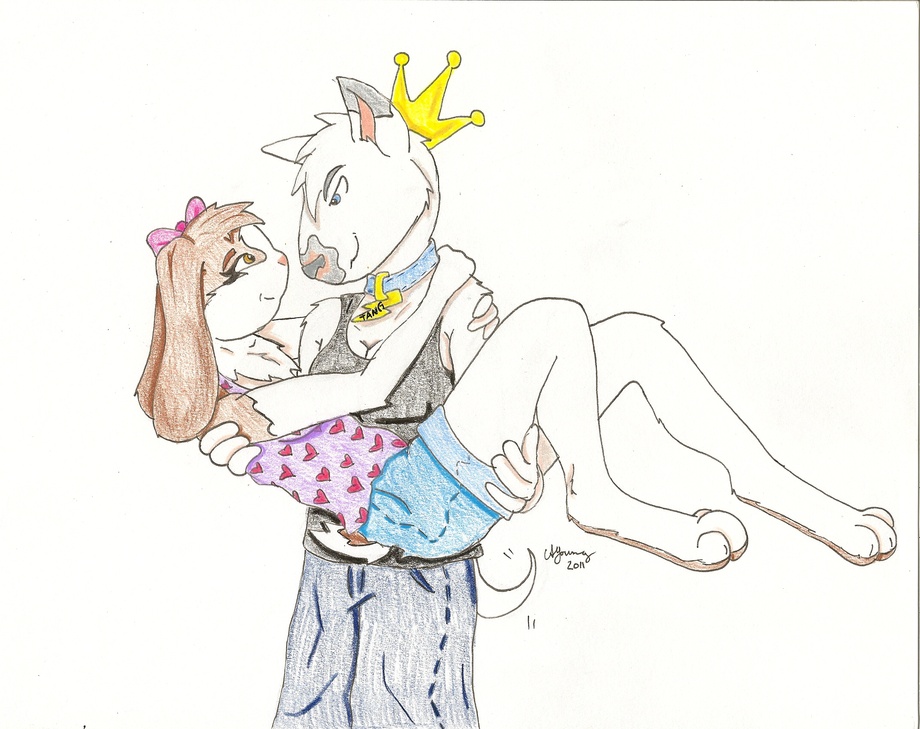 A darling little drawing I did of my wonderful mate, Tang, and myself. Aren't we so adorable together?! He just loves showing off and carrying me around. Hehehe <3