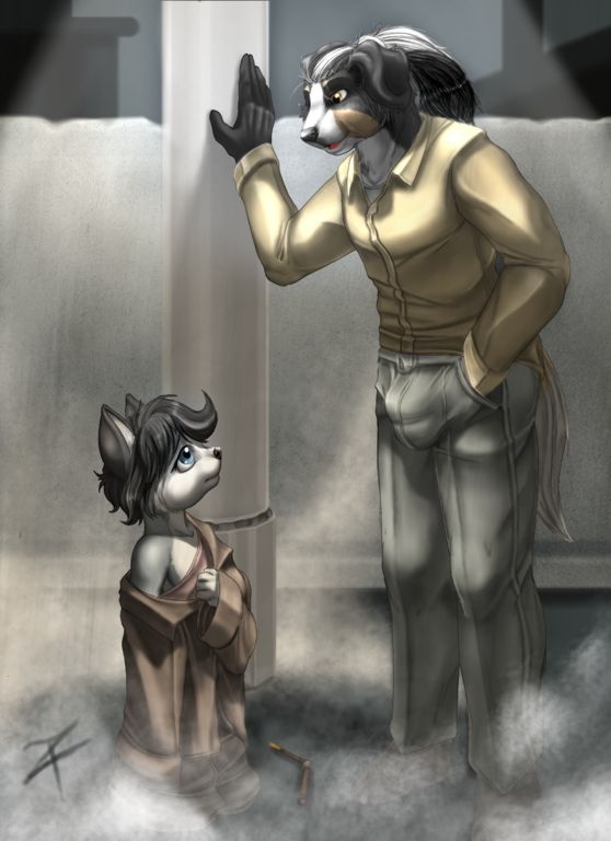 The first part of a three part little serie. For those who don't know, Loupy was a magician at one time in his life and basically attempted to take over the world. In hope to make everyone happy, but forgetting that a golden prison is still a prison. He was defeated and curse with age regression (loosing his black feathered wings in the process) and left wandering in the streets. And Fiona (as a male dog) found him and adopted him. He would later regret it.