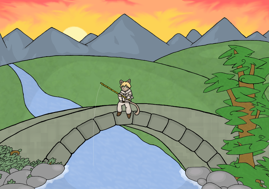 Just wanted to try my hand at some landscape. Eh, I'm not very good at it. Maybe it would've been better if the lines had been more painty and not solid black lines. Still, I got to try out some different things and it was fun.