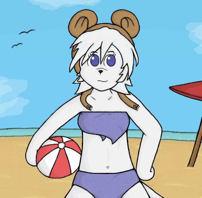 This is a slightly older Neige enjoying her day at the beach. Even though she can't seem to find anyone to play with.