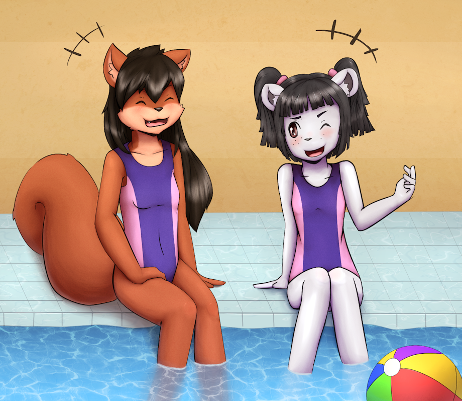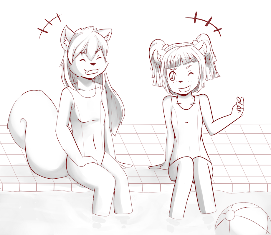 Claire and Nikki took a break to sit on the pool edge and to talk.