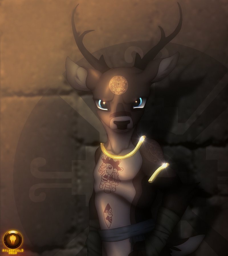That is what I think about end of the world, and in this picture I put mayan and aztecs symbols, more specific: the aztec calendar on the head of the deer, the death on his chest and the belly the obsidian knife, and the mayans the mayan cross representing Hunab Ku: only true and living god and was the eldest of the gods of Yucatan, but had no figure, they said, he could not imagine being incorporeal.