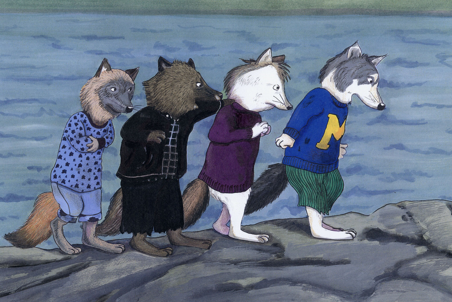 Did this one about 5 years ago, I think. Clan of wolves making their way across a jetty. Happiest with the female on the far left. She's kinda pretty. ^^