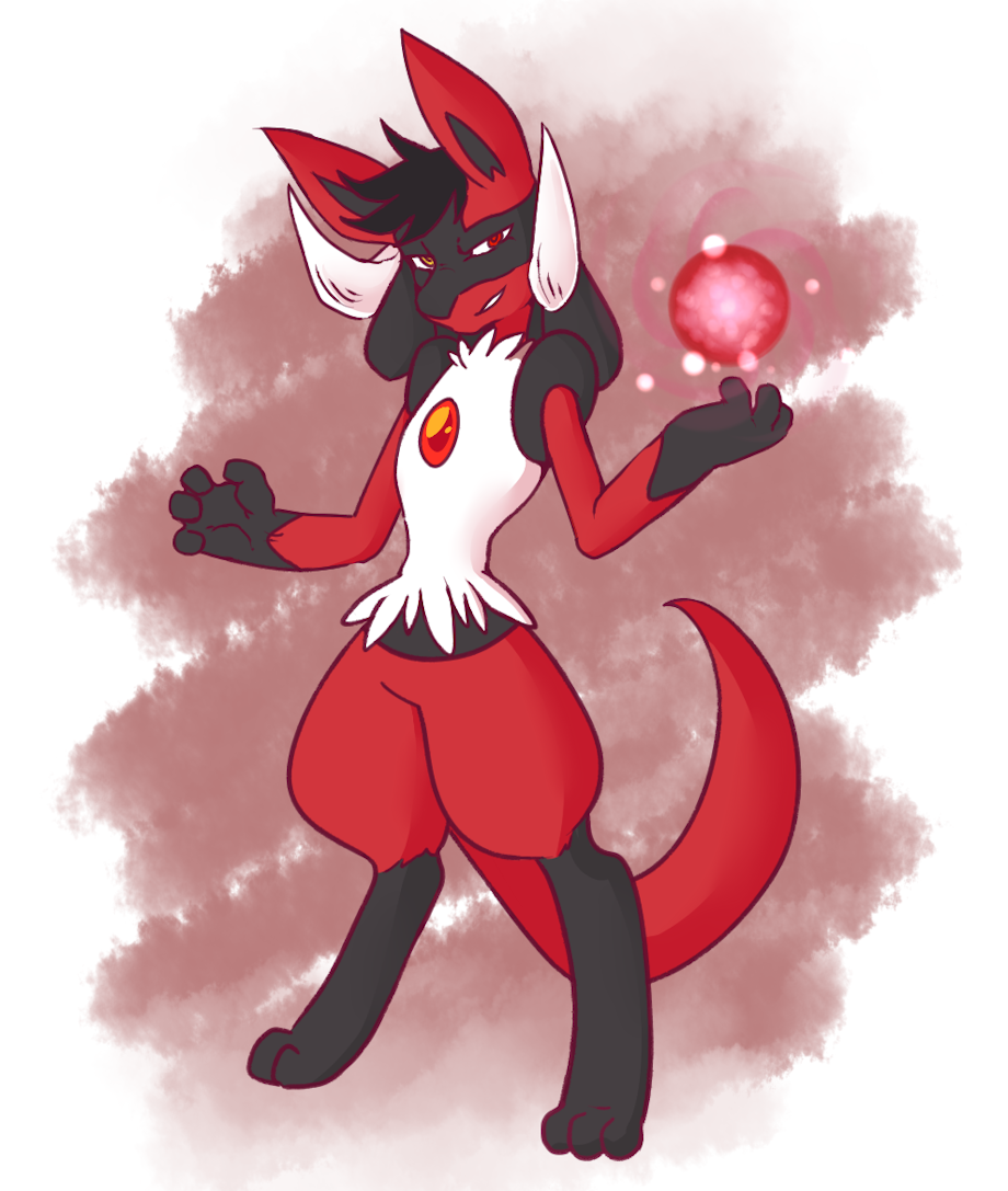 Haha, looks like my character Ruca. She's a Lucario-Wolf with red fur. :P Nice work.
