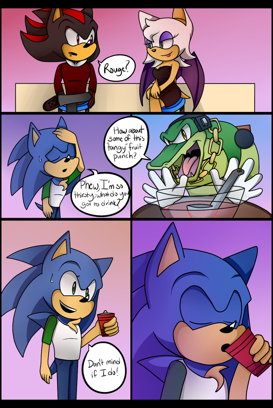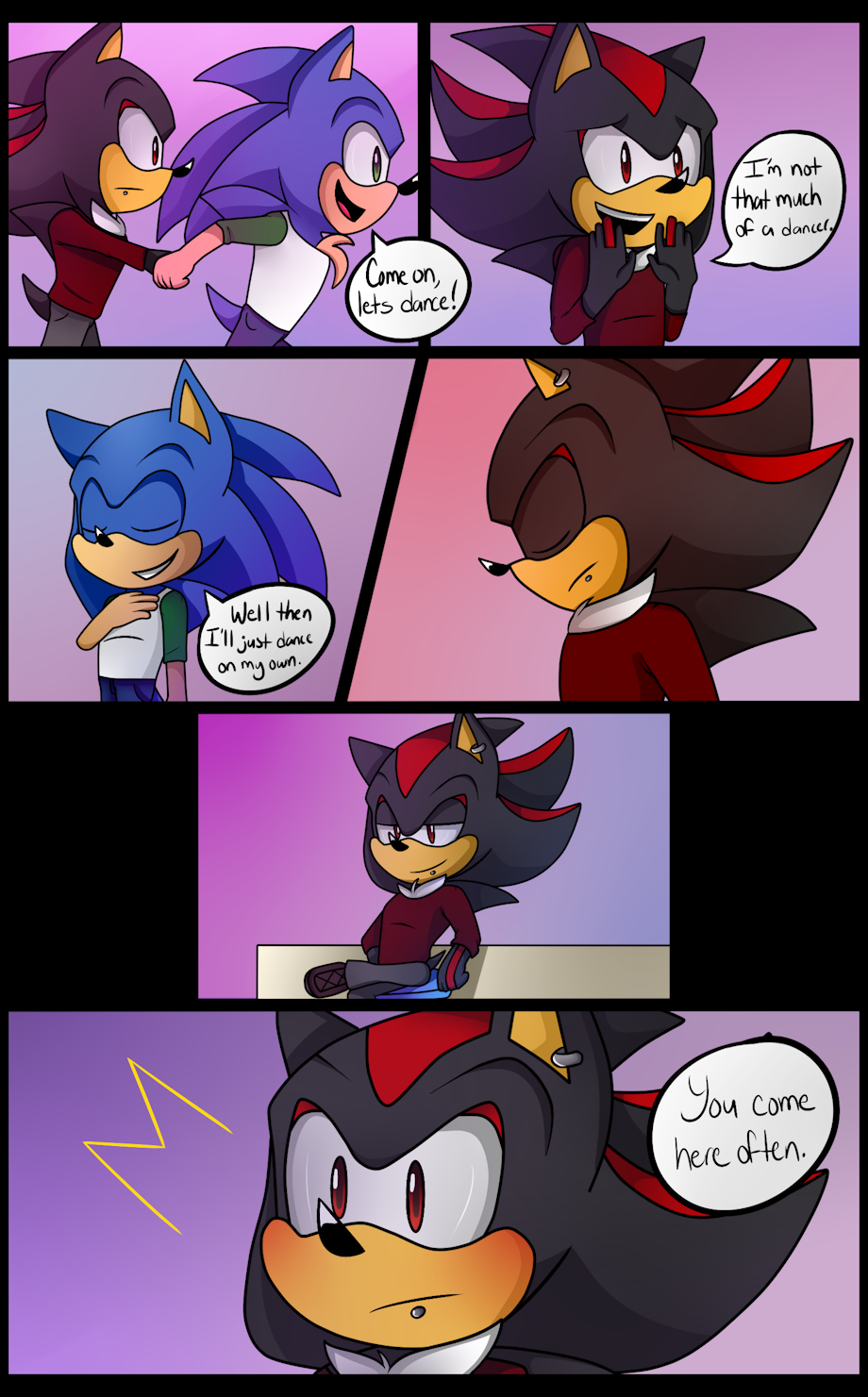 You guys thought it was someone else talking to Shadow, but it was just good-ol' Rouge teasing him. This was also my first time at trying to draw Vector.