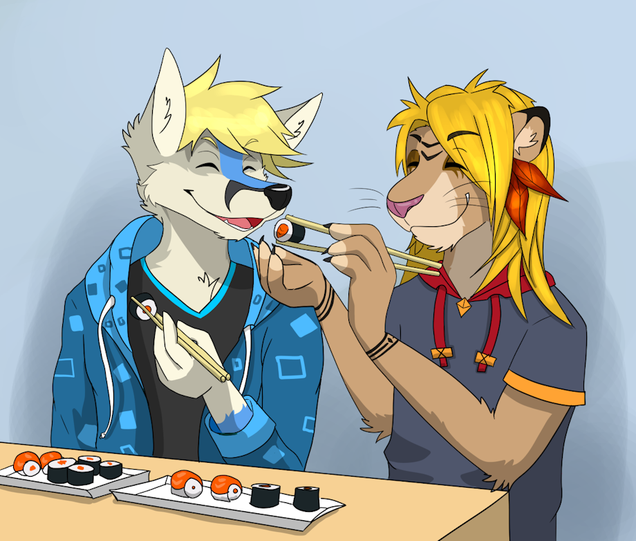 A drawing of Flookie and Maz (Mazucha @ FA). Do you like sushi? :3
