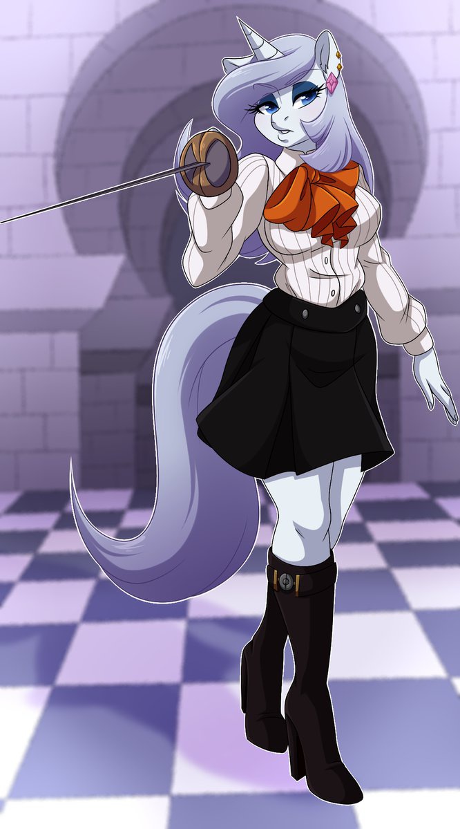 She is cosplaying as Mitsuru Kirijo from the game Persona 3, Since both her and mitsuru are similar in a couple ways (They both High born, Wield Rapiers and are basically leaders) etc etc, So it was fun to have her commissioned to do this~