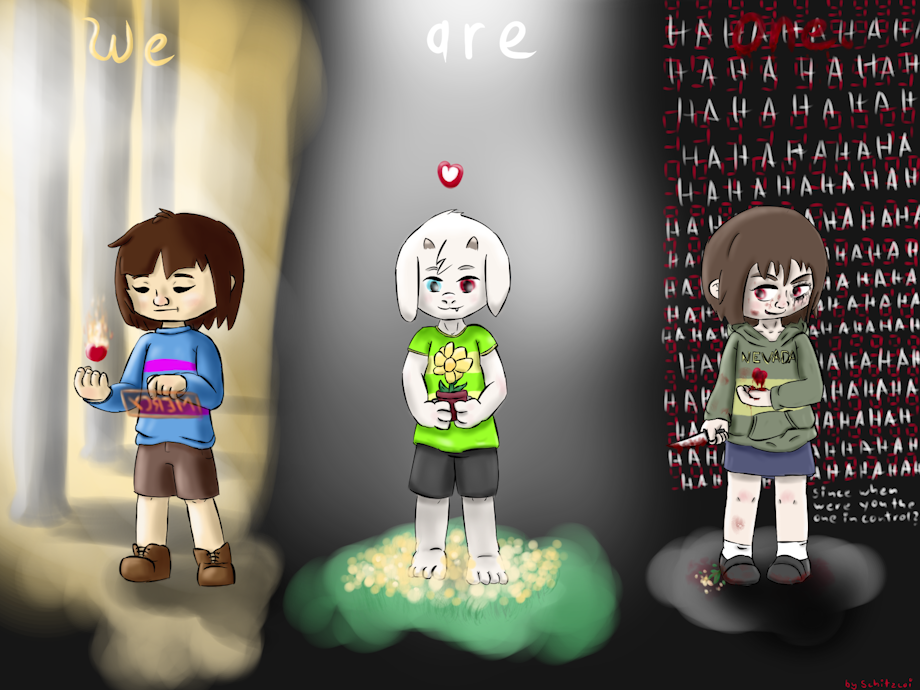 Undertale fanart with Frisk, Asriel and Chara.