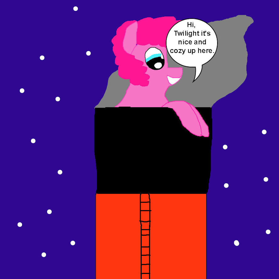 Pinkie Pie somehow managed to get in Titanic's funnel. She may just have to blow the whistle to get down.